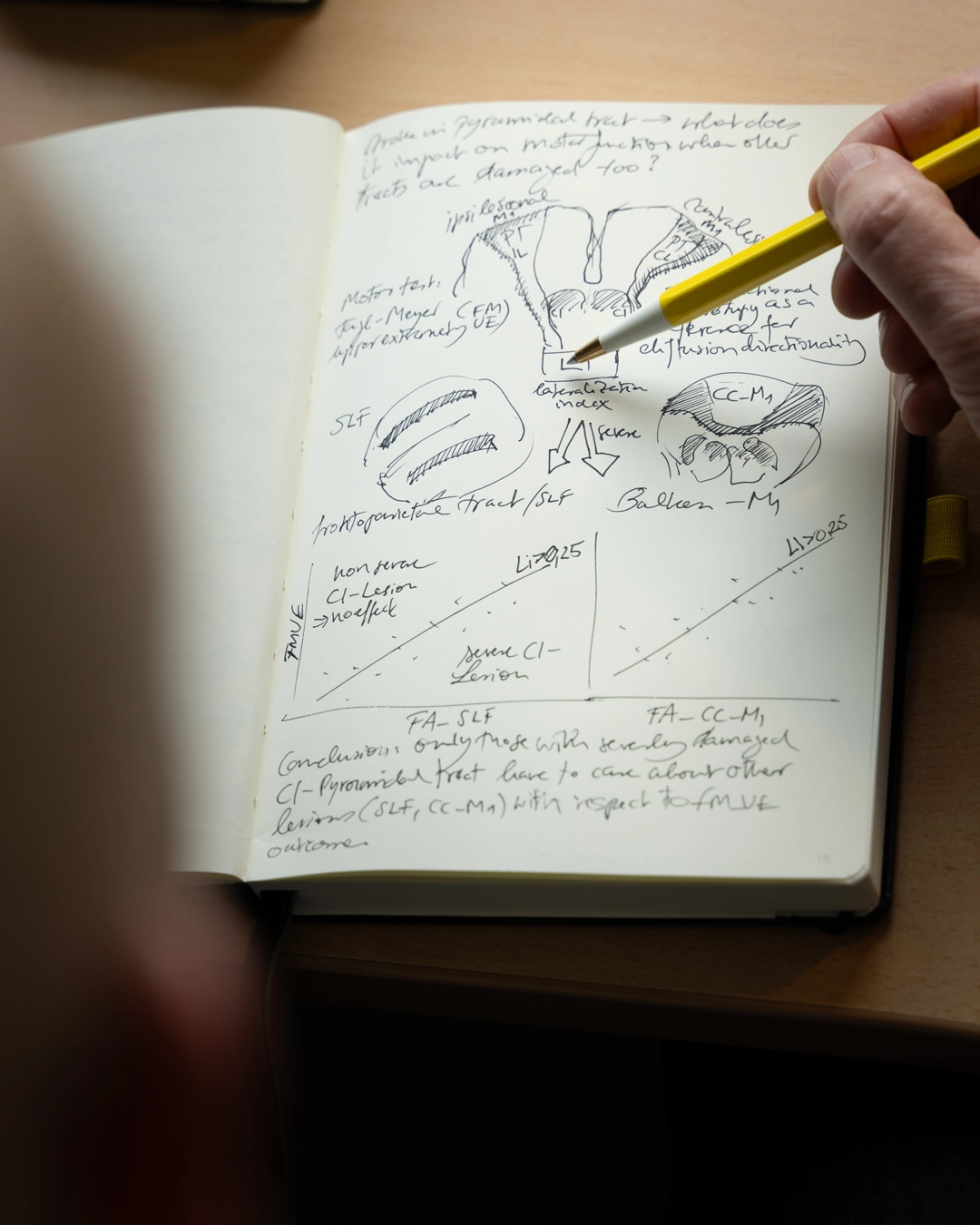 „Neurowissenschaft ist ein sehr digitales Fach. Ich kehre immer wieder zu Skizzen zurück. Ein weißes Blatt Papier birgt unbegrenzte Möglichkeiten.“